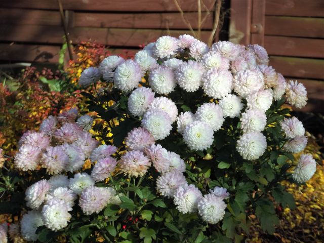 Niezwykle barwny jest Twój ogród Ewo jesienią :) . A te chryzantemki z ostatniego zdjęcia urocze :kocham , bardzo lubię takie o pojedynczych kwiatach i jak tylko zobaczę jesienią zawsze kupuje i sadzę w ogrodzie ale jeszcze mi żadna nie przezimowała :(