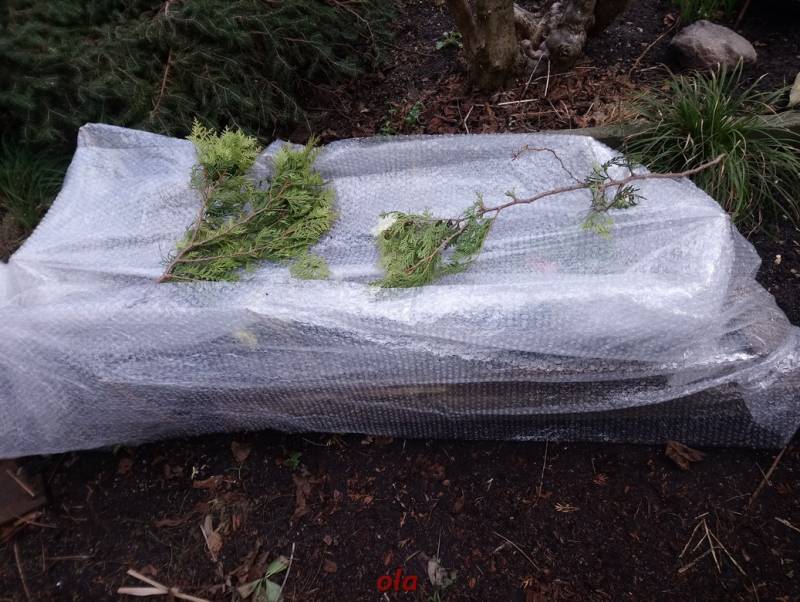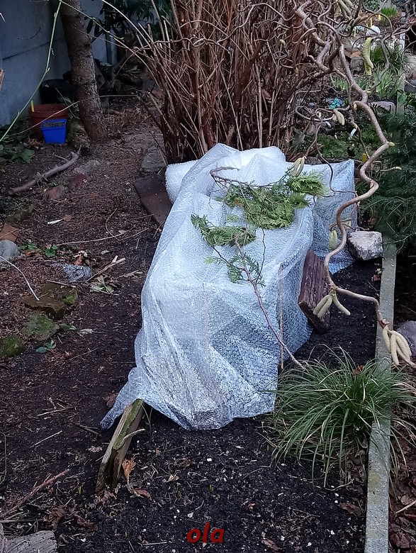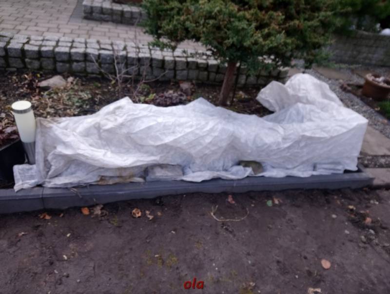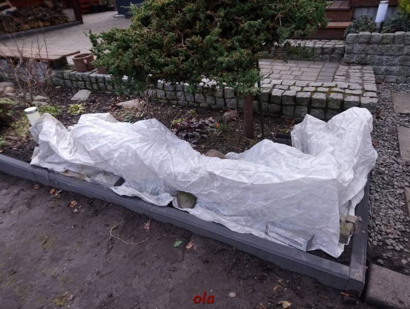 Na nadchodzące mroźne noce , świeżo posadzone pierwiosnki i ciemierniki dostały okrycie ...