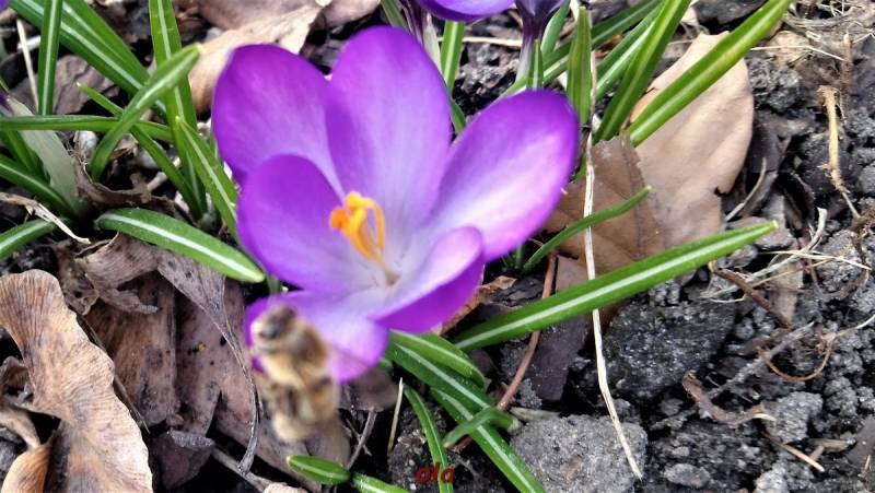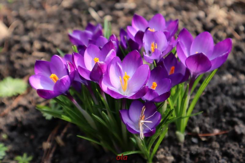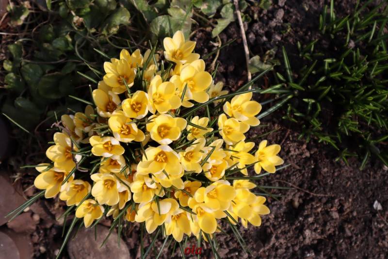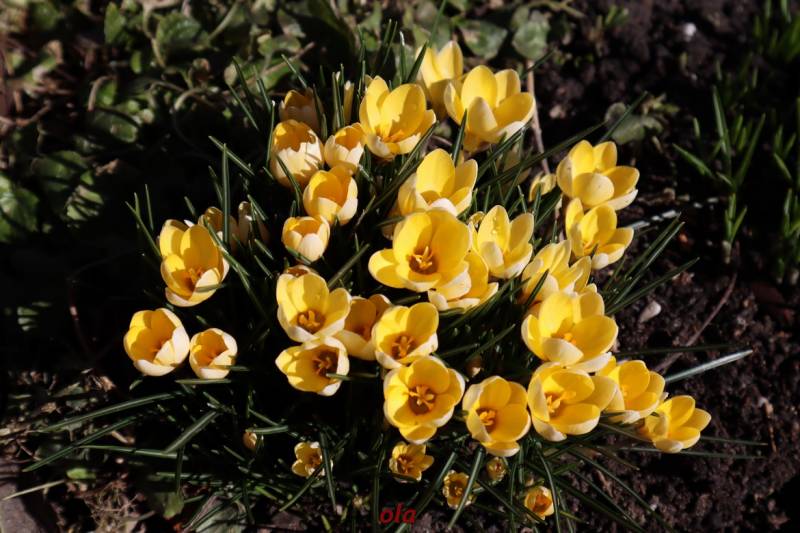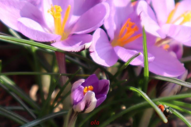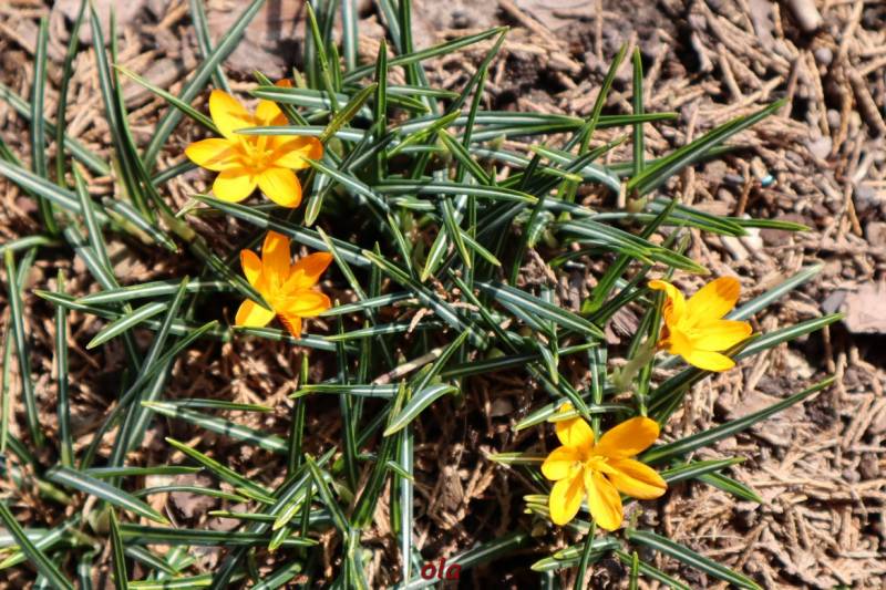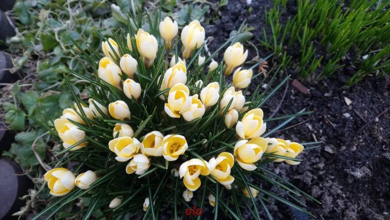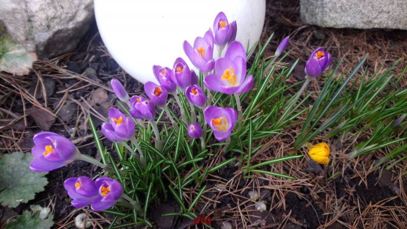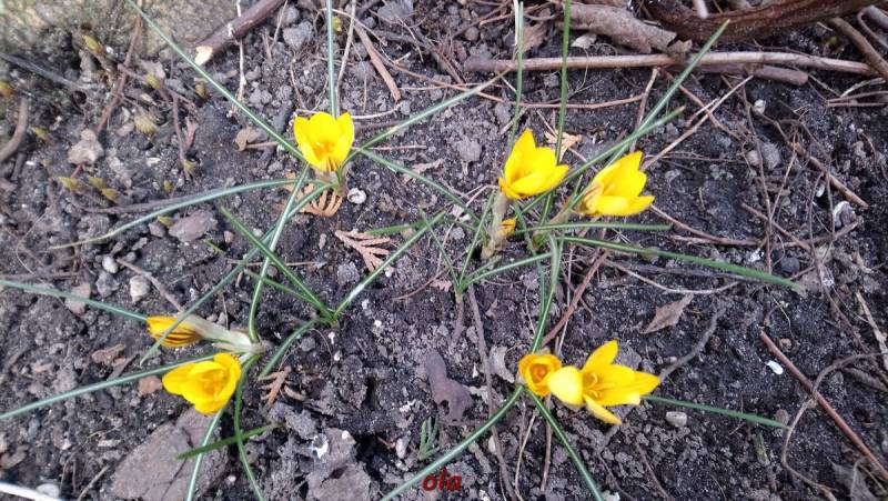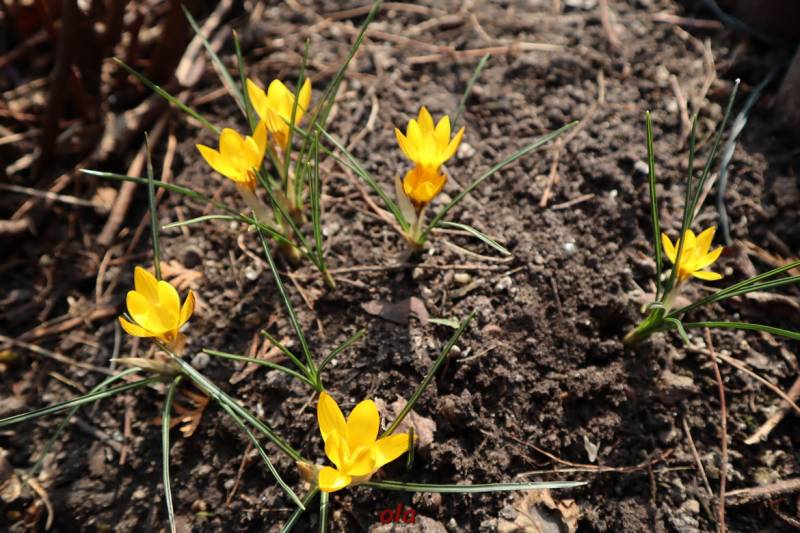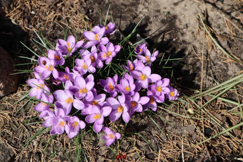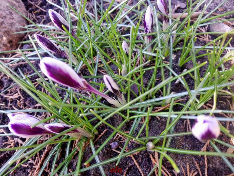 Na krokusowej górce pokazały się kwiatki następnych krokusów .