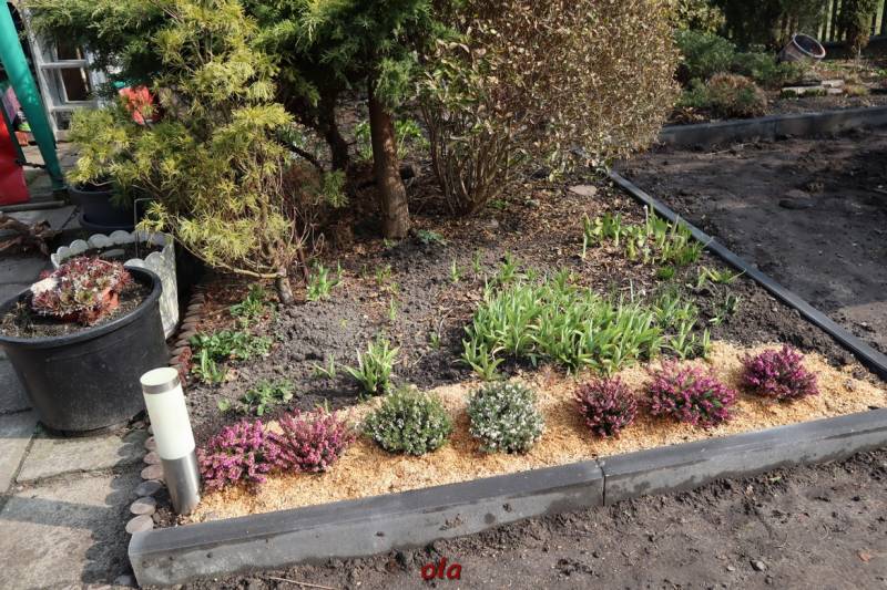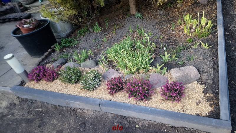 Wreszcie zięć zakończył krawężnikowanie i mogłam wysadzić ( zakupione w PRZYTOKU ) wrzośce !