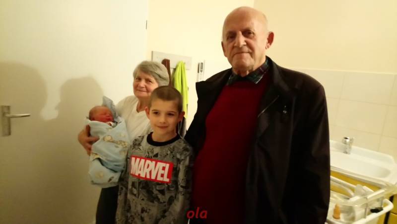 A tu szczęśliwe dziadostwo z najstarszym ( 8 lat ) i najmłodszym ( 2 dni ) wnukiem .