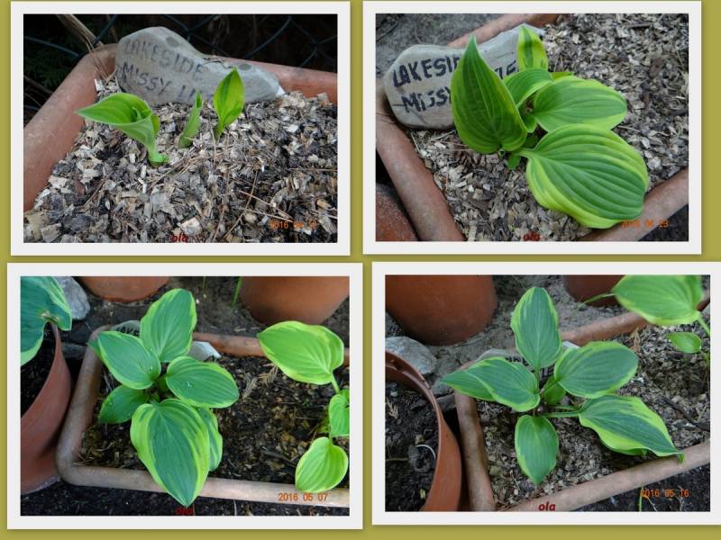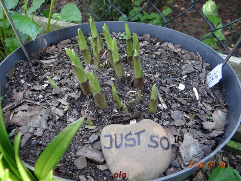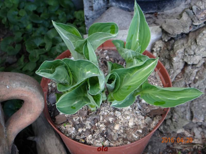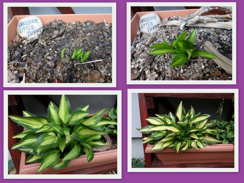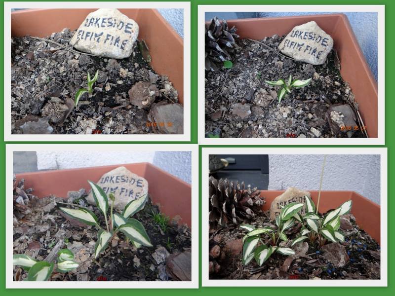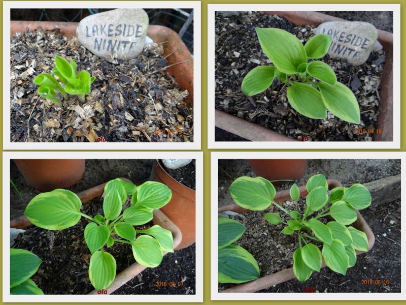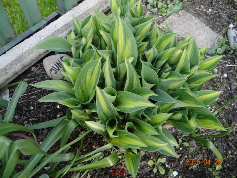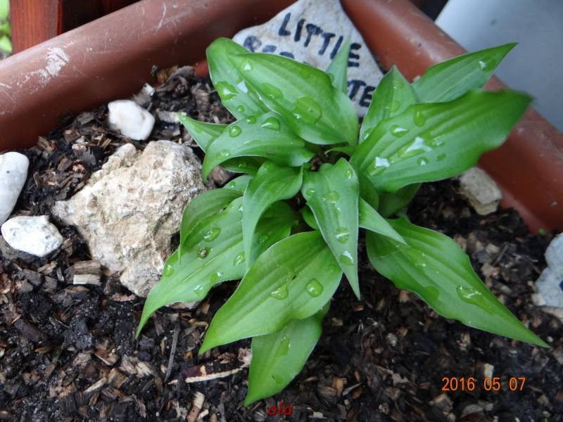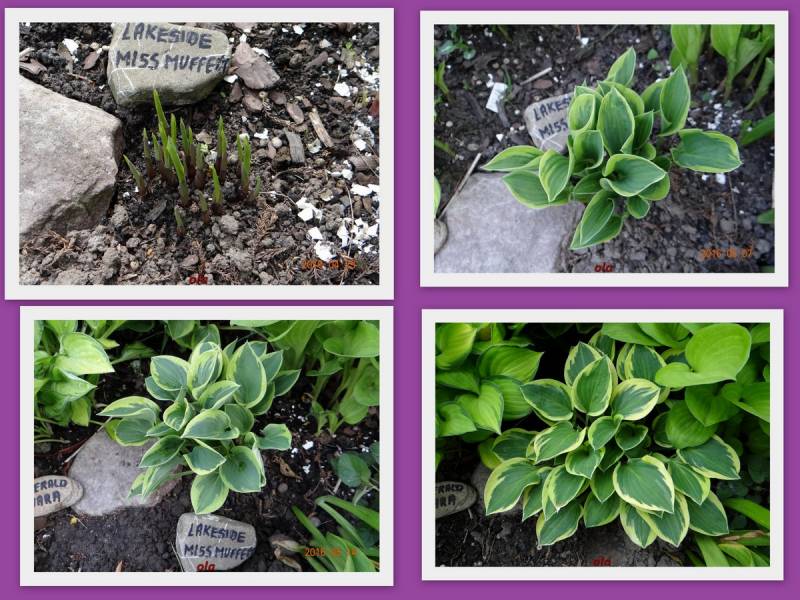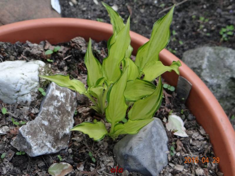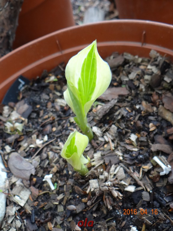 Każda hosta na zimę ginie a wiosną zaczyna kiełkować ... potem tworzyć skrzydełka a na koniec tj. maj - czerwiec osiąga swoją odmianową kolorystykę i wielkość .