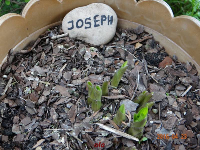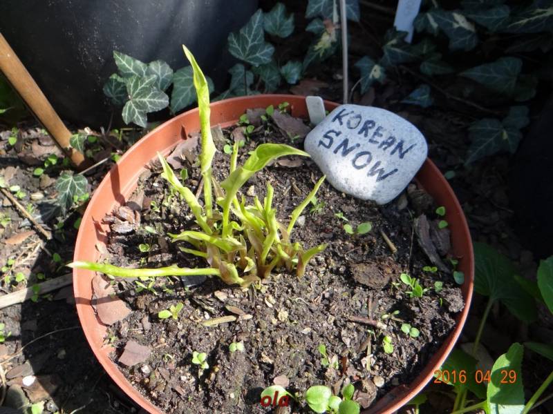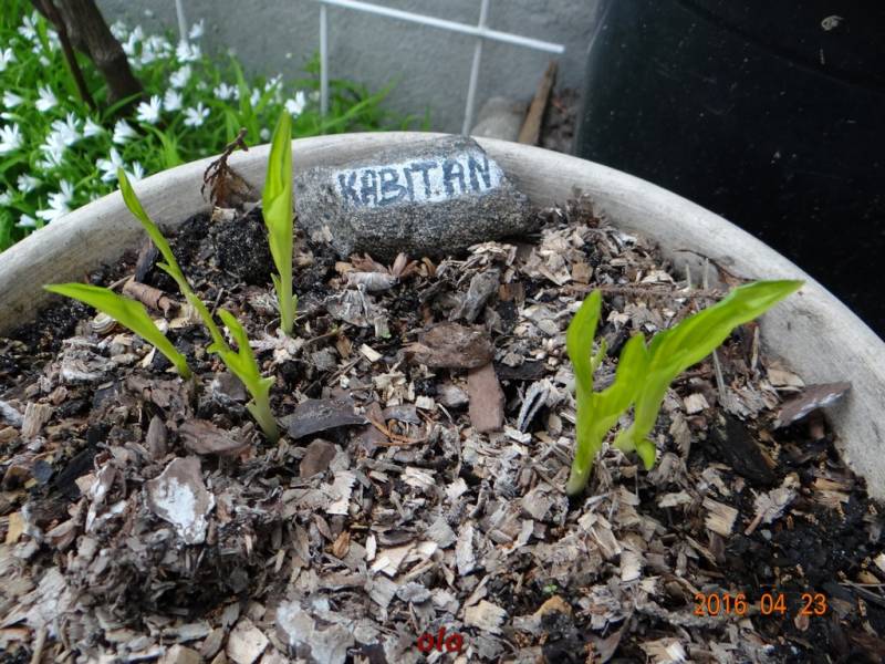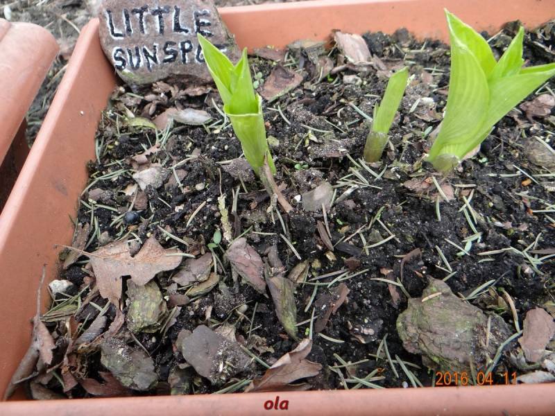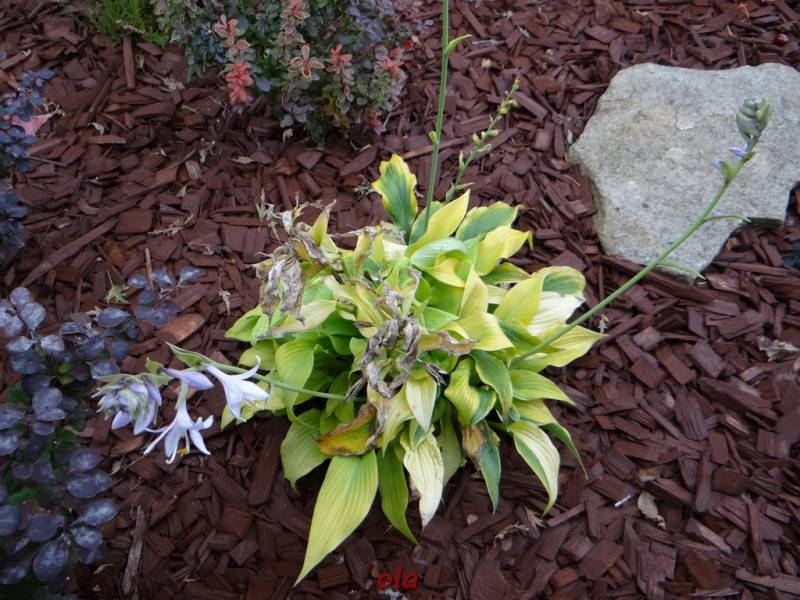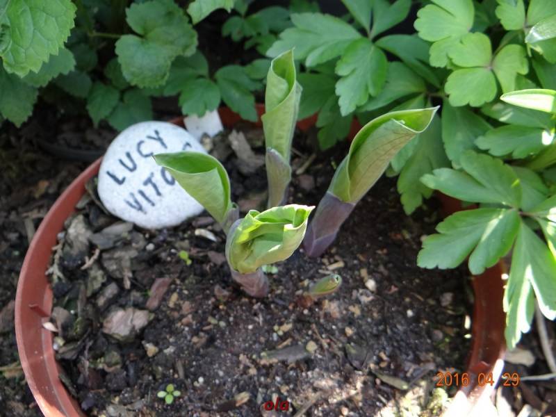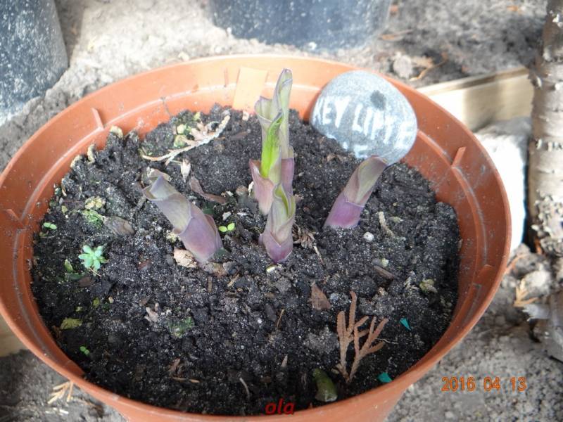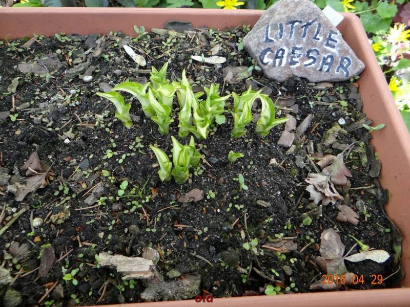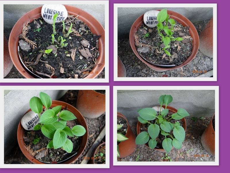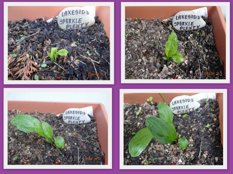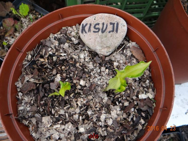 Każda hosta na zimę ginie a wiosną zaczyna kiełkować ... potem tworzyć skrzydełka a na koniec tj. maj - czerwiec osiąga swoją odmianową kolorystykę i wielkość .