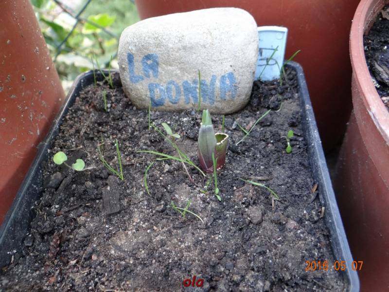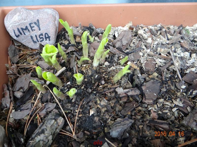 LA DONNA 30 -35cm Kłącze tej odmiany wyjęłam z wielkiej skrzyni u holenderskiego producenta roślin do marketowej sprzedaży . Nie miało więcej jak 5 cm .