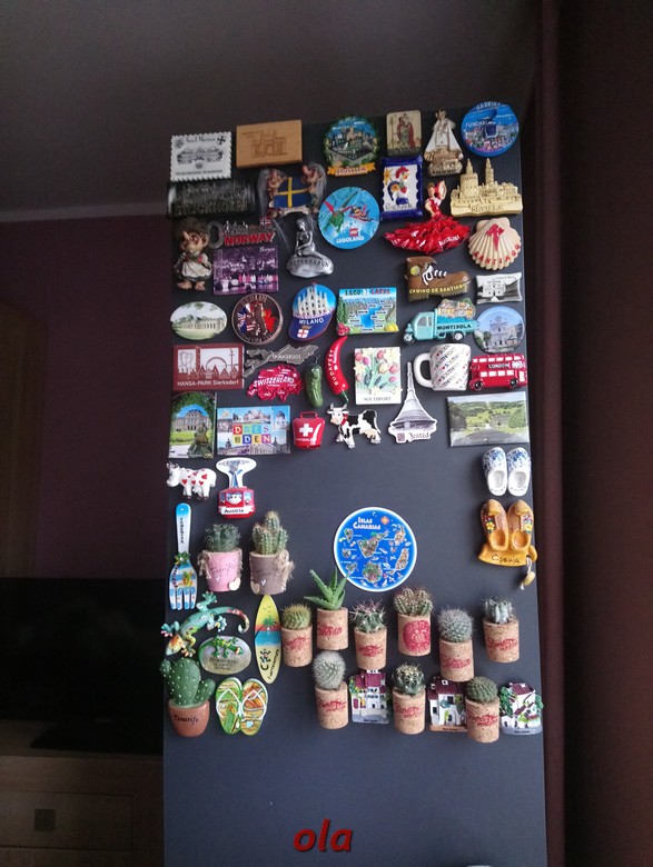 Tomek z heklowania już wyrosłam a magnesy poprzestawiałam ...ale nie na lodówce , lodówka zabudowana .