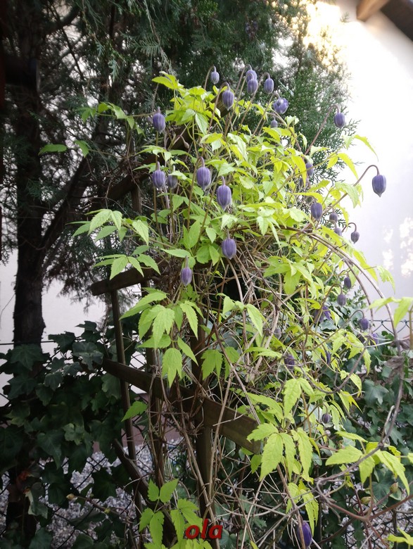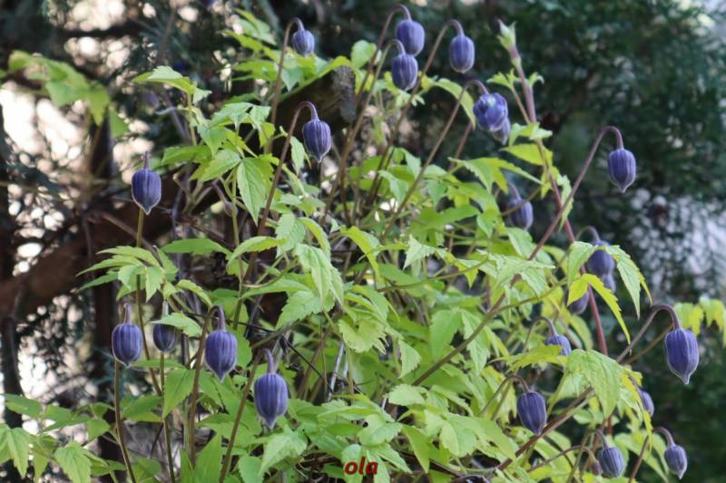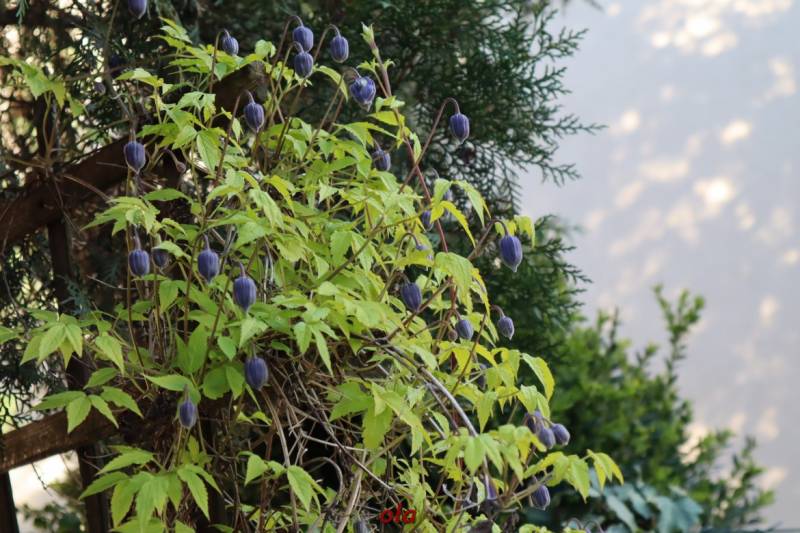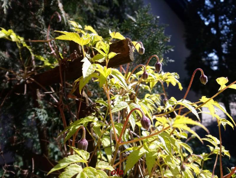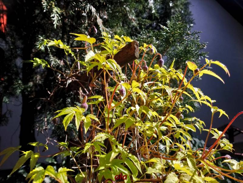 Powojniczek zaraz rozkwitnie ma cytrynowe liście i ciemnoniebieskie kwiaty