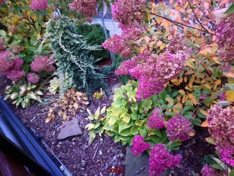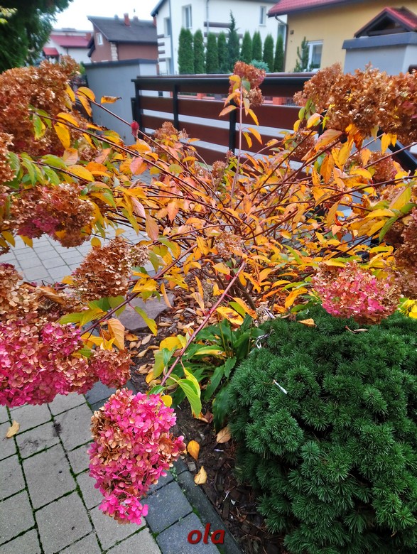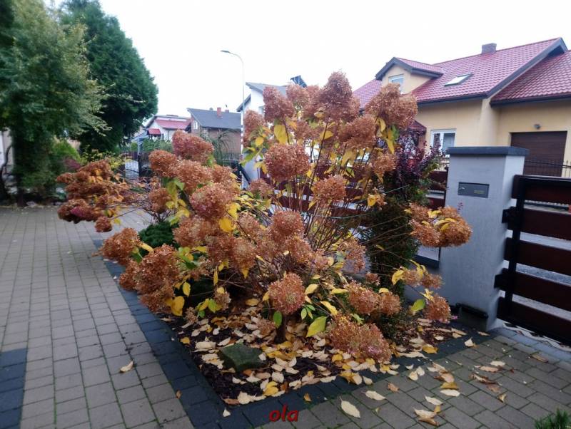 Veruś , zetnę wszystkie pokładające się pędy hortensji bukietowej , ale te pionowe zostawię ....może będzie śnieg :tup lubię takie białe czapy na suchych kwiatostanach ..