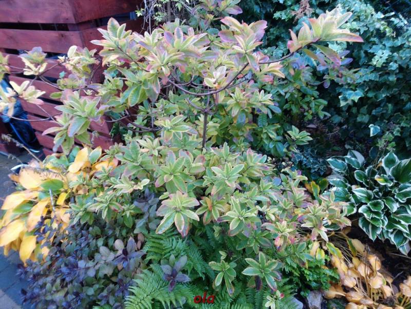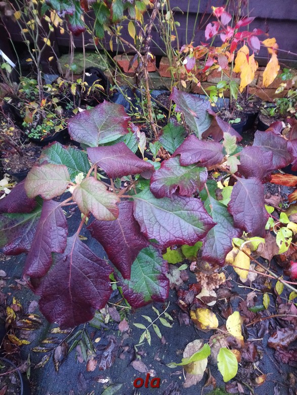 Hortensja dębolistna prawie na czarno się przebarwia .....