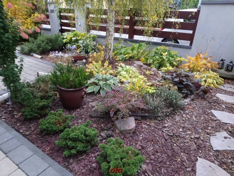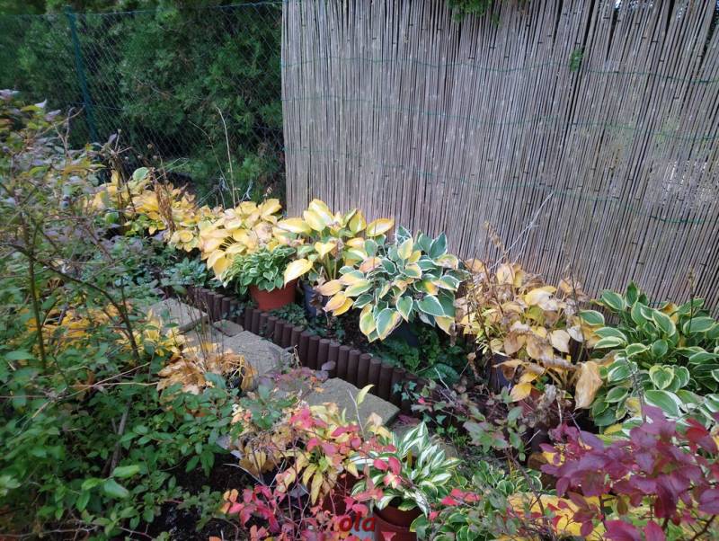 Na czas zimy dołączy do przedszkola . Gdy hosty stracą liście i temperatura spadnie poniżej 0 , zasypię wszystkie doniczki korą i zdejmę cieniówkę .