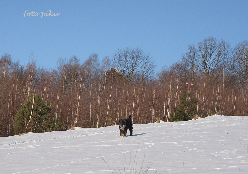 Wiesiu, piękna ta Twoja zima, błękitne niebo i biel śniegu, i tak czyściutko :slonko Piesio wygląda na zadowolonego, po zmrożonym śniegu lepiej się biega, nie robią