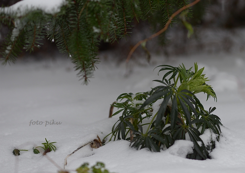 Śnieg urozmaica i upiększa nasz ogród o tej porze. U mnie ani płateczka! Szaro i ponuro :angry: Super wygląda ten wilczomlecz!