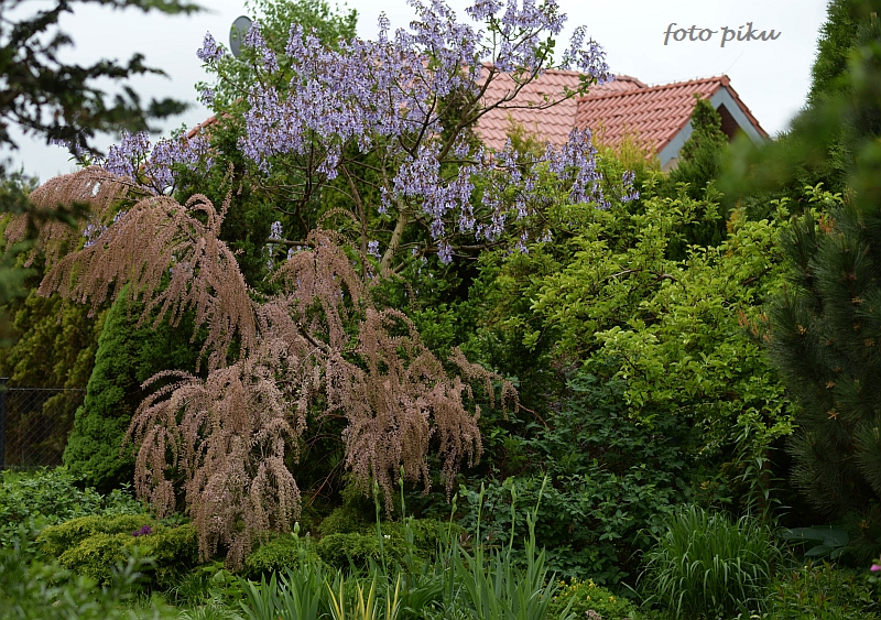 paulownia trzyma się dzielnie a tamaryszek już w fazie przekwitania