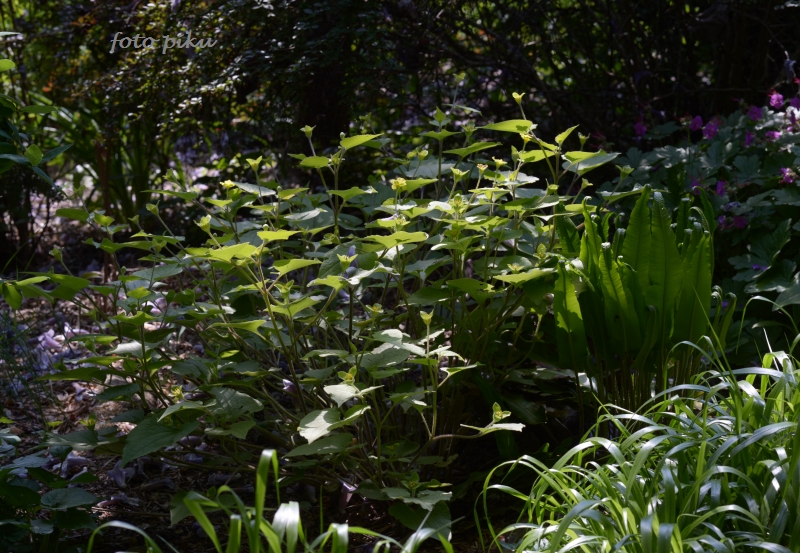 Miłko, a ja myślałam że u Ciebie wszystko szybciej kwitnie :) . Jak rdest się wysiał to już będzie się siał co roku :) , a potwora przesadź puki jest mały :silly: