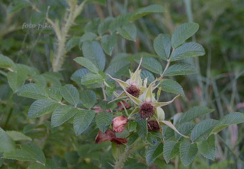 A w kolczastym żywopłocie największy z różanych krzewów zaszczycił mnie już tylko owockami :zielony