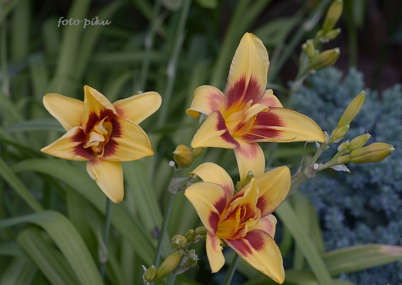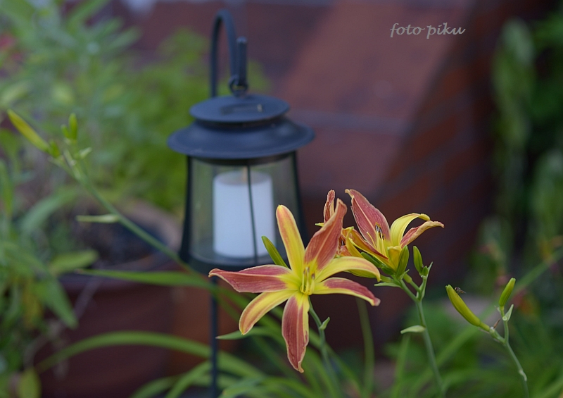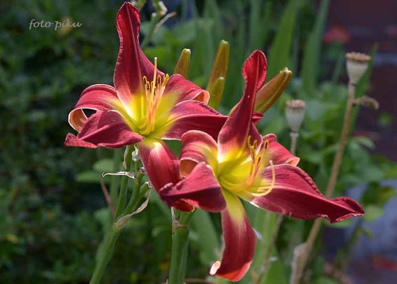 No i dzielnie radzą sobie liliowce, poza podsuszonymi dolnymi partiami liści kwitną nieźle :)