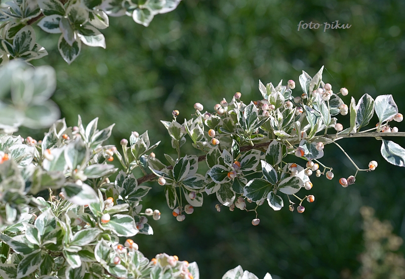 Danusiu, trzmielin mam kilka ale tylko ta zielono żółta tak pięknie owocuje, choć ta o biało zielonym wybarwieniu też ma nieco owocków :)