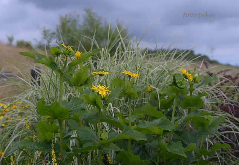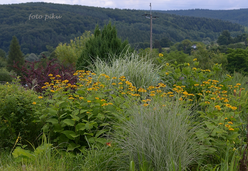 Lato w pełni, więc ta rabata w kolorze słońca pięknie się prezentuje na tle zalesionych wzgórz.