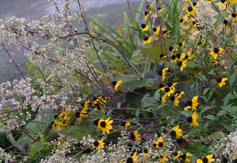Świetne zdjęcie rudbekii w towarzystwie żurawki. To niesamowite, że nadal kwitną.