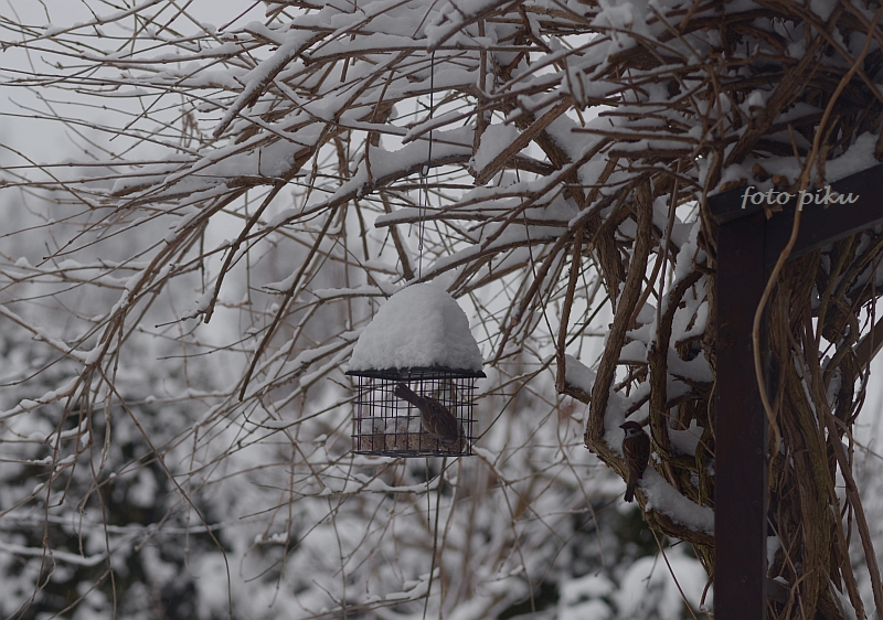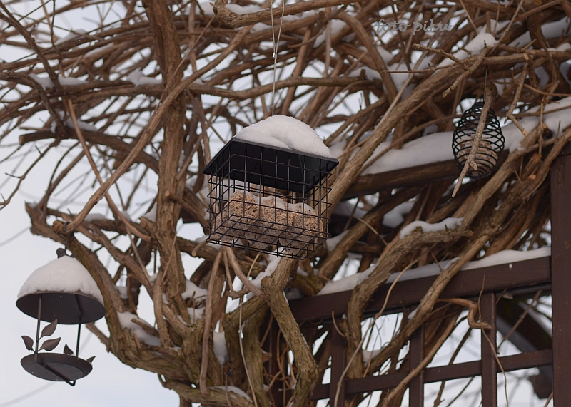 Ptasie stołówki przygotowane, ale ptactwa też jakoś nie widzę :dry: