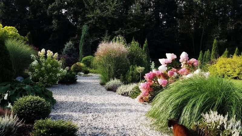 Kamienne ścieżki wśród kwiecistych rabat