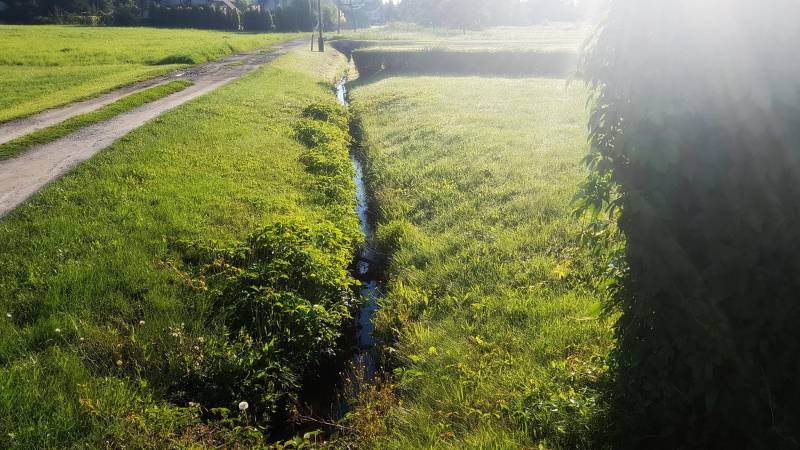 Ja zostawilabym ten ciek w naturalnym stanie, jedynie obsadzając kaczencami i niezapominajką.