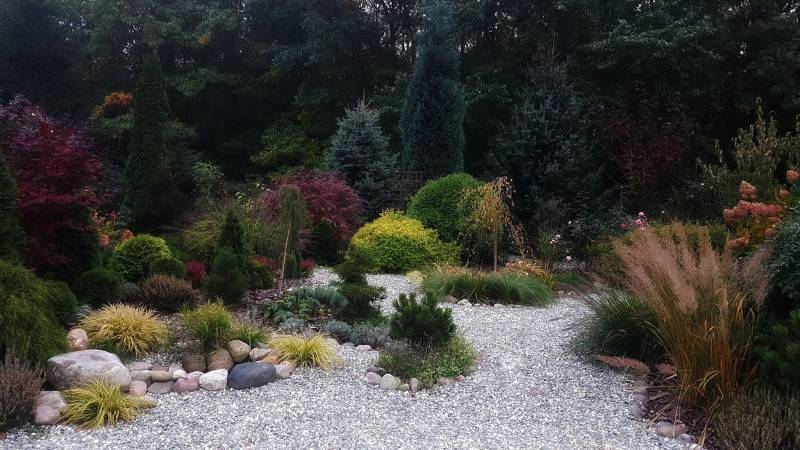 Edytko mój domek stoi mniej więcej w 1/3 działki na środku, położony na górce (za domem jest bardziej płasko) przed domem nachylenie terenu jest dużo większe. Plus jest taki, że rośliny mogą rosnąć niemal jak w amfiteatrze, ale koszenie trawy już takie komfortowe nie jest. W dodatku po ulewnych deszczach i na wiosnę z lasu spływa woda i na samym dole działki robi się bajoro i błoto nie do przebycia - w planie mam ogarnięcie tego w tym roku. Ziemia też jest bardzo różna. Pod lasem kiedyś była uprawiana i tam jest dobra, żyzna próchnicza, ale im bliżej domu robi się bardziej ciężko, gliniaście. Przed domem i z boków domu sama glina, w którą latem nawet szpadla nie wbijesz, bo zbita w kamień. Zagospodarowałam prawie 20 arów, na tej lepszej ziemi. Do ogarnięcia jeszcze teren przed domem (ok.5 arów) - wąski strumyk (rzeka Nacyna)- o jej obsadzenie staram się od zeszłego roku w Zarządzie wód i rzek (bo choć płynie na moim terenie to sadzić nic nie wolno na 1,5 m od brzegu!), podjazd do domu, skarpę przed domem już obsadziłam - głównie zróżnicowane teksturami iglaki, bo to północ) i "łączka" na glinie, gdzie nawet chwaściana trawa nie bardzo chce rosnąć... tu jeszcze muszę pomyśleć, co z tym zrobić. Pomysłów mam kilka...