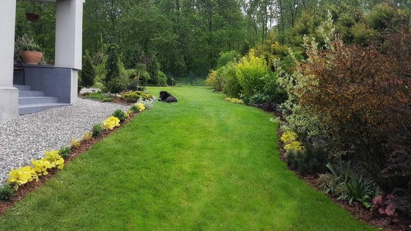 Mniej więcej w takich samych odległościach posadziłam, może nie będzie w takim razie tragedii :) Zdjęcia bardzo zmniejszają rzeczywistość. Przy tych ilościach, które masz na nowych rabatach - one wydaja się wcale nie duże a ja umiem sobie wyobrazić jak w takim razie wyglądają rozmiarowo. Krwawniki to jest to! Mam 2 odmiany i apetyt na kolejne i są tak jak piszesz proste w obsłudze. Dałam je na razie w jednym miejscu do małego w sumie różanego zakątka i też będę dzielić na środkową rabatę. I ja takie maciupeńkie byliny sadziłam i tak jak wyglądają Twoje 2 rabaty, tak u mnie wygląda niestety wszystko :( ech cierpliwości.... Obrzeże będzie - już jest! - śliczne. Wszystko u Ciebie pasuje idealnie :bravo
