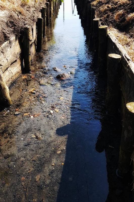 Korzystając z faktu, że dziś mam wolne, a że zapowiadali afrykański upał, wstałam dzielnie o 4 rano i dawaj czyścić rzeczkę. Nie wiem czy mnie ten pomysł nie przerośnie. Moje gumiaczki przebrały, więc walczyłam dzielnie w gumiakach męża, trudno, że za duże, ale dużo wyższe! Na początku nawet dało radę, ale przesuwając się z każdym centymetrem przybywało mułu i syfu wszelakiego.Nogi grzęzły w tym, że wyjąć było bardzo trudno. Wywalałam to do taczki i dawaj wywozić ... pot zalewał oczy, po takim fitnessie czuję każde włókno mięśniowe i każdą kosteczkę, plecy spalone (choć zwykle mnie słońce nie parzy, tym razem chyba skóra mi zlezie). Skończyłam o 11.00. Teraz padam... ale zostawiam relację foto - na fotkach tak tragicznie to nie wygląda