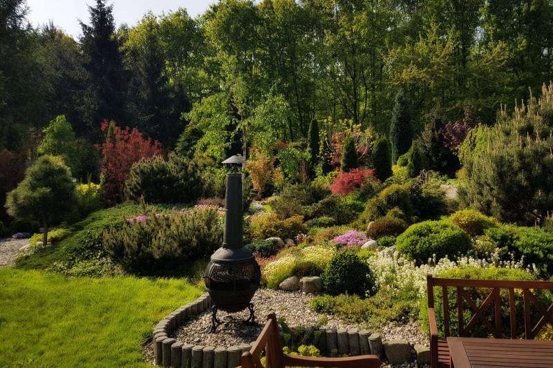 Tnę, sprzątam i sprzątam, i wycinam, bo mróz zniszczył mnóstwo wrzosów i wrzośców - już wywaliłam blisko 20 a to jeszcze nie koniec, wymarzł nawet ubiorek wiecznie zielony, a przecież taki odporny, padły wszystkie turzyce "Ogień Prerii" w ilości 15 sztuk... przesadzam i dosadzam... zmieniam koncepcje. Wywaliłam 4 berberysy (bez większego żalu) no i zostało puste miejsce. Dzięki wycince wreszcie się odsłonił dereń kwiecisty rosnący pod płotem, no i zyskałam dużo miejsca na byliny. W planie jest rabata w odcieniach niebieskiego i fioletu i różowości, choć w tle będą rosły dwie pnące róże Moonlight i Maigold, ale one mają różowe obrzeża płatków, więc może jakoś to się wpasuje., tym bardziej, że pod płotem rosną clematisy "made in LIdl" w kolorze fioletowym, więc może przełamią tę żółć?