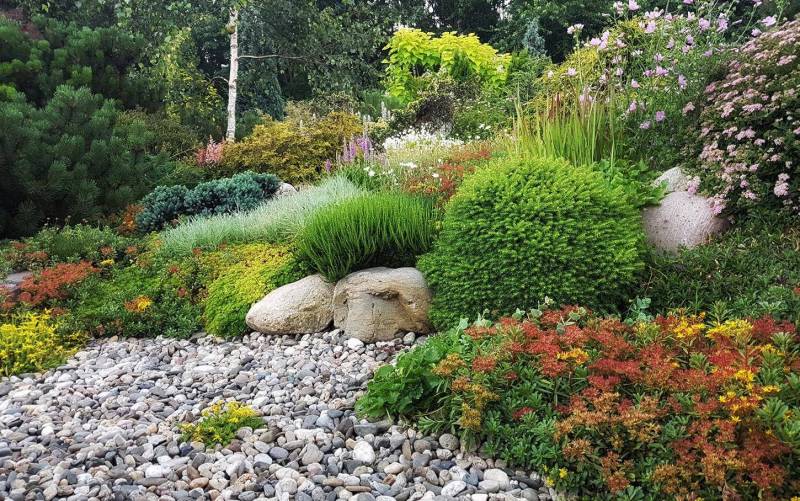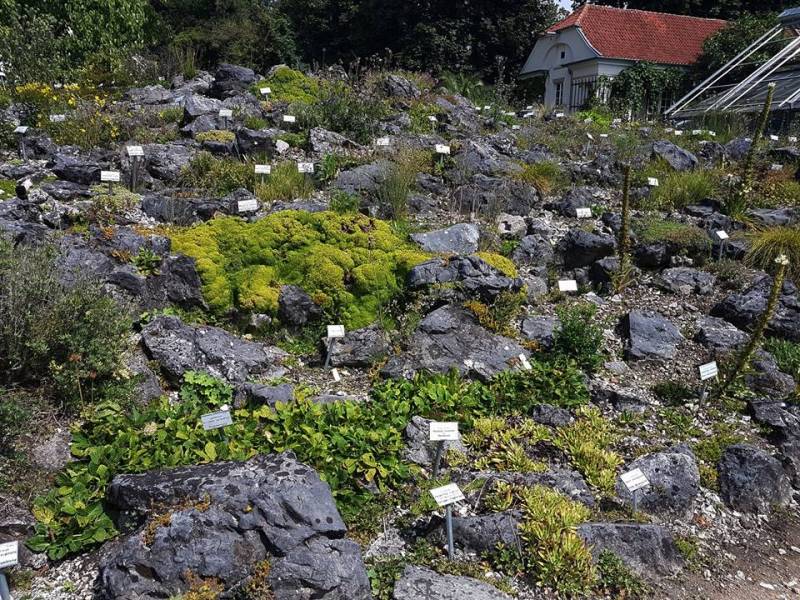 Alpinarium 8 - Rośliny górskie, zróżnicowane w zależności od położenia skał wapiennych i pierwotnych