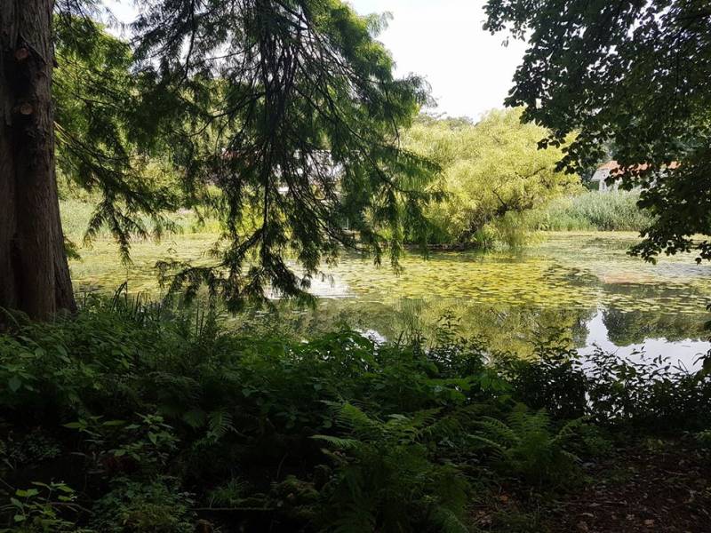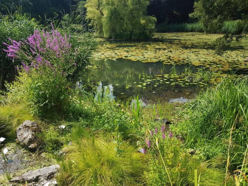 Sercem ogrodu jest wielki staw, do którego wpływa chyba ze 150 maleńkich strumyczków i cieków. Jest niemożliwie naturalistyczny, miejscami wygląda na zaniedbany, ale nic bardziej mylnego - nawet rośliny "spontaniczne" są tu pod kontrolą