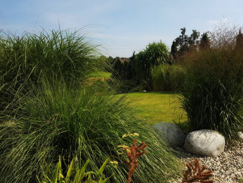 Rabaty coraz pełniejsze... nad ścieżką kłosi się rozplenica Rubrum, szkoda, że jednoroczna