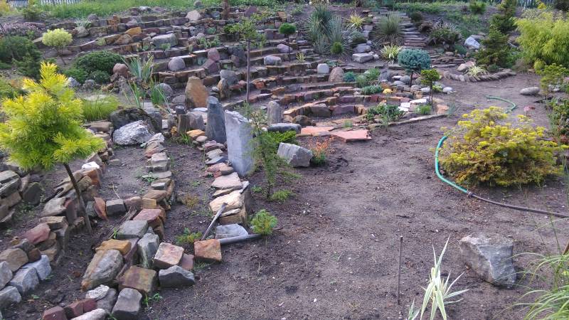 Sosny, magnolie i kamień polny....ogród zwyczajny. |