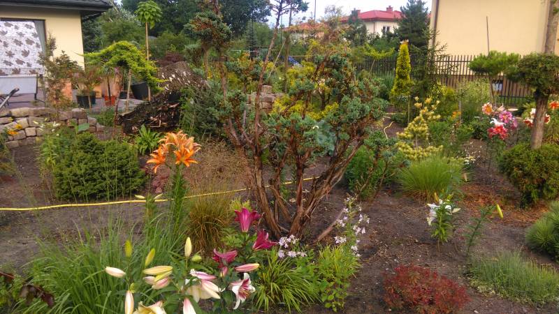 Sosny, magnolie i kamień polny....ogród zwyczajny. |