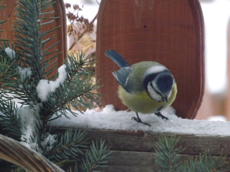 U mnie wczoraj było biało, a dzisiaj ani śladu zimy. :nie Sikorki też przylatują, ale przede wszystkim wróble.