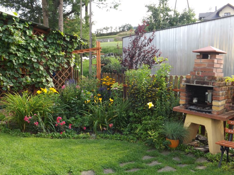 Ewuś tam była żurawka i tojeść rozesłana ale kiepsko sobie radzą a wymyśliłam sobie żeby te garnki ustawić po dwóch stronach grilla i obsadzić np.hostami :)