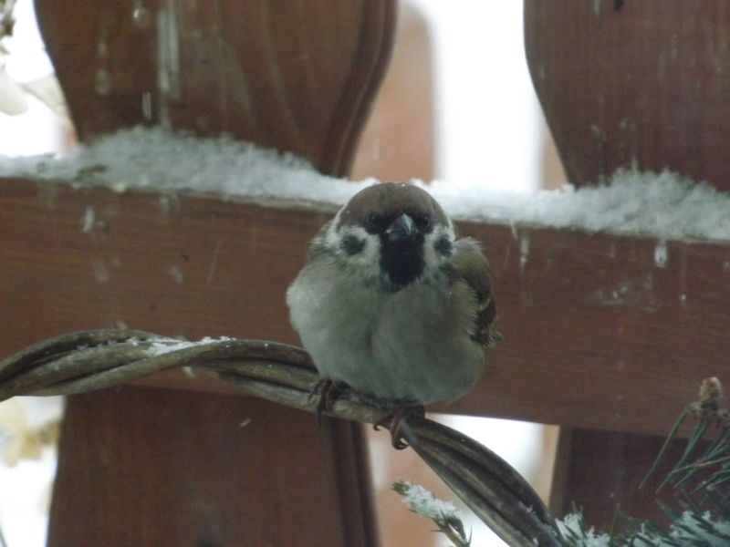Śniegu cały czas u mnie co trochę ubędzie to nowego dosypuje,dzisiaj sypie chwilami tak że świata nie widać a do tego wieje okropnie ale nie będe Wam juz zimy serwowała tylko ptaszki które się uwijają niesamowicie przy takiej pogodzie.