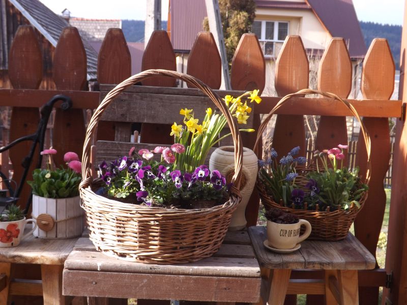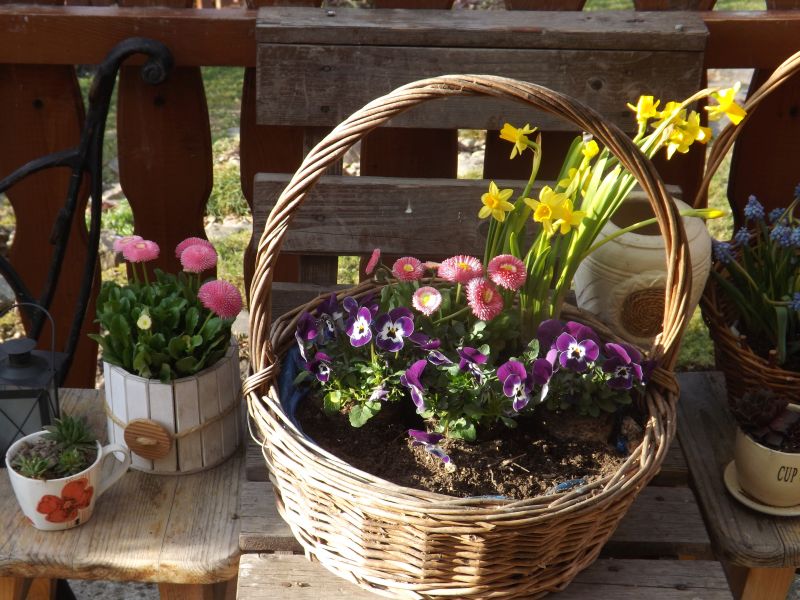 Wiesiu jeszcze mam jeden koszyczek i też posadziłam w nim brateczki koło ławki ale zdjęcie nie wyszło ładne więc jak wreszcie zrobi się cieplej to zrobię powtórkę :)