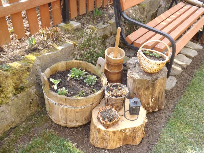 Lubię takie plastry z drzewa i wszelkiego rodzaju korzenie. One zawsze kapitalnie zdobią ogród. Kącik "wystawowy" jak zwykle robi wrażenie. :)