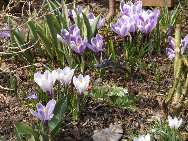 śliczne krokusy a gość jaki kolorowy.Super rozrośnięte ciemierniki,u mnie i jedne i drugie zmarzły.Idą kolejne mrozy a u mnie sporo wszystkiego kwitnie,poddaje się 0flaga