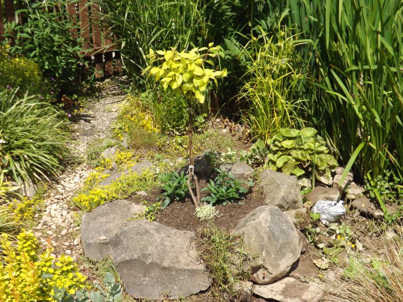 Jarząb posadzony w nowym miejscu bo tam gdzie go posadziłam koło potoczka to ostatnio wcale woda nie schodzi a dzisiaj znów pada.powiem Wam że nawet bardziej mi się tutaj podoba :)