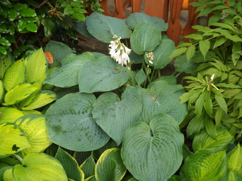 Hosty jak na tyle deszczu i wilgoci u Ciebie, na szczęście nie są za bardzo przez ślimory pogryzione. :zielony