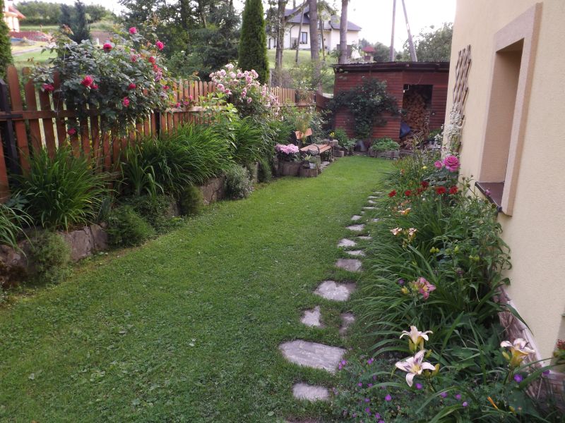 Całe trzy dni było słonko i bez deszczu ale już nadciągają ciemne chmurzyska porobiłam przez te dni w ogródku-przesadzanie,przycinanie i trawnik dzisiaj wykosiłam,troszkę też poszerzyłam rabatkę z ciętymi iglakami od strony tarasu ale fotek już nie zdążyłam zrobić.