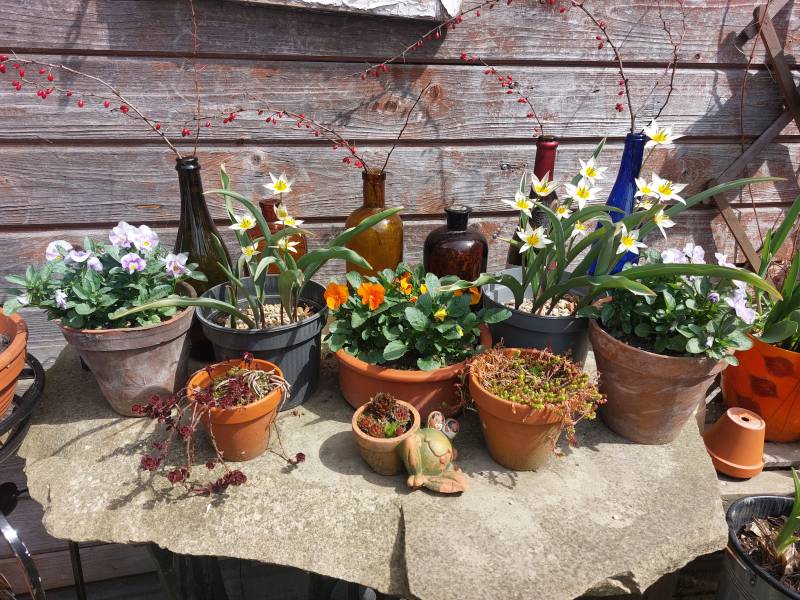 Grażynko,Miłeczko dziękuję No kocham je miłością wielka a one sie u mnie dobrze czują więc rozsiewam nasionka po rabatkach ,same się wysiewają a jeszcze do donic też sieję nasionka i w piatek własnie wszystkie maciupeństwa posadziłam już do ziemi bo w zeszłym roku zauważyłam że szybciej rosną te w ziemi niż te posadzone do doniczek Zadowolona jestem też z moich cebulowych w donicach bo padły tylko 2 donice reszta ładnie kwitnie pierwsze były krokusy potem iryski a teraz czekam na narcyzy,tulipany i czosnki oczywiście wszystko potem pójdzie na rabatki w wolne miejsca