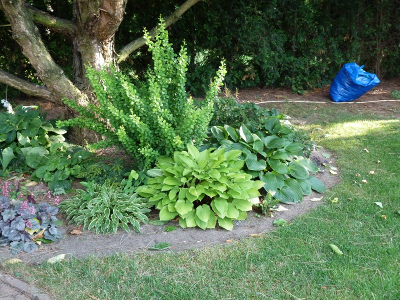 Od razu wykorzystałam okazję i wyrównałam trawnik przy okrągłej rabacie przy tarasie.