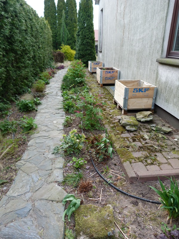 Trzeba je tylko pomalować. Są już częściowo obsadzone. Ciekawe jak bedzie to wyglądało kiedy rozrosną się rośliny.