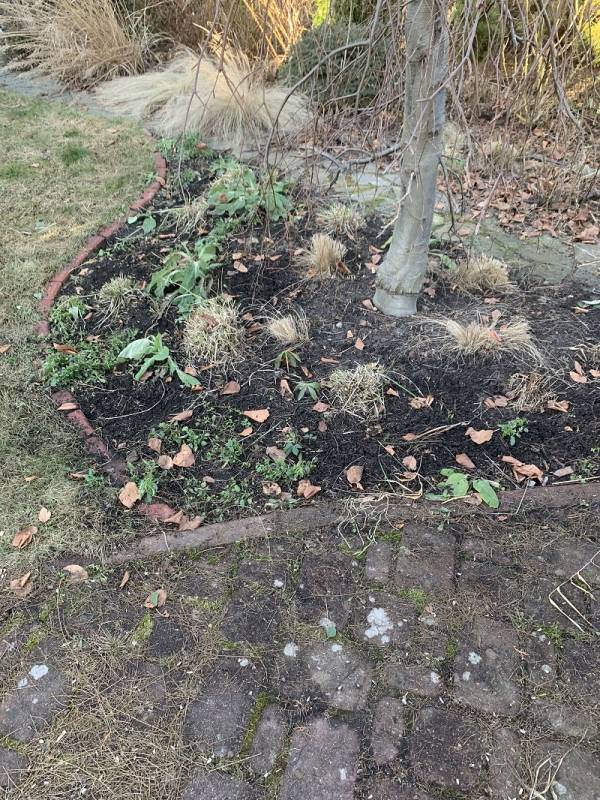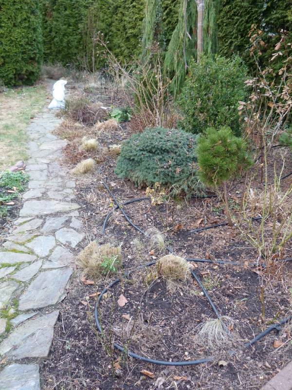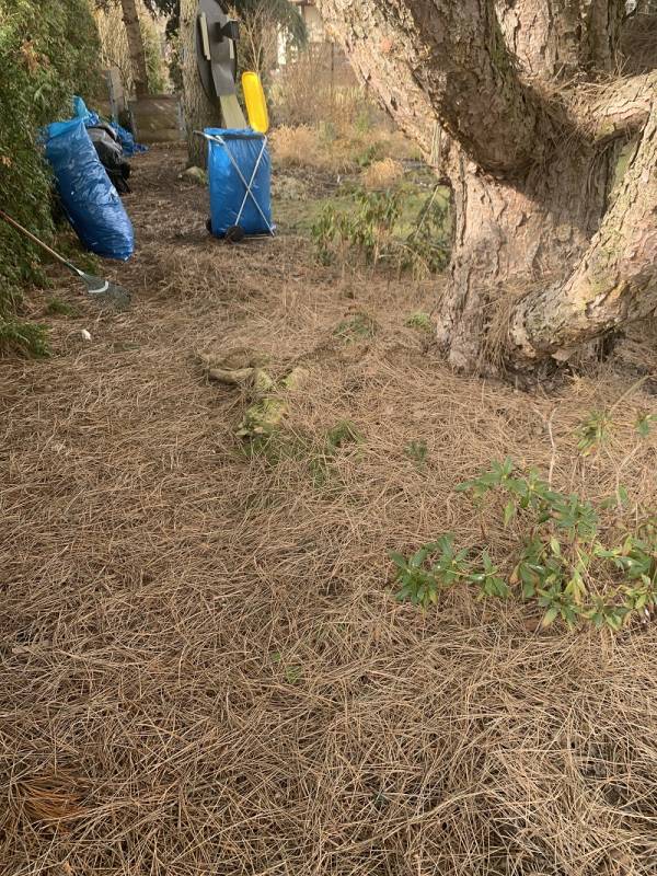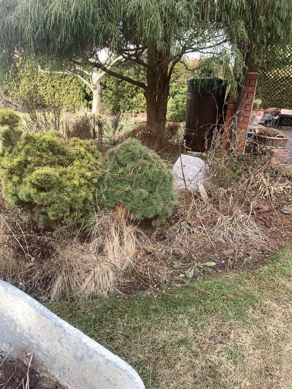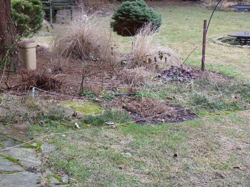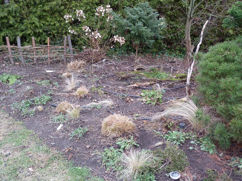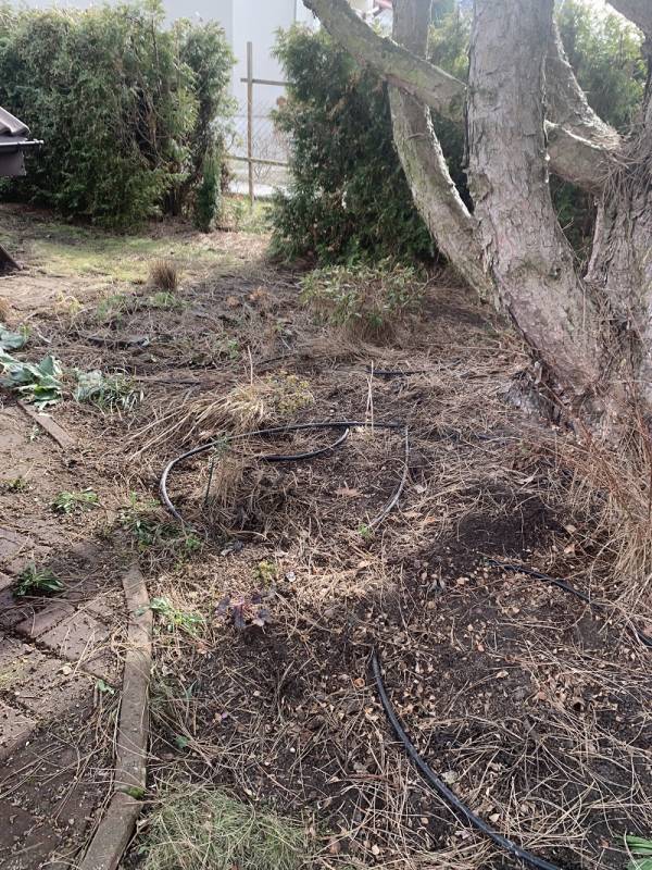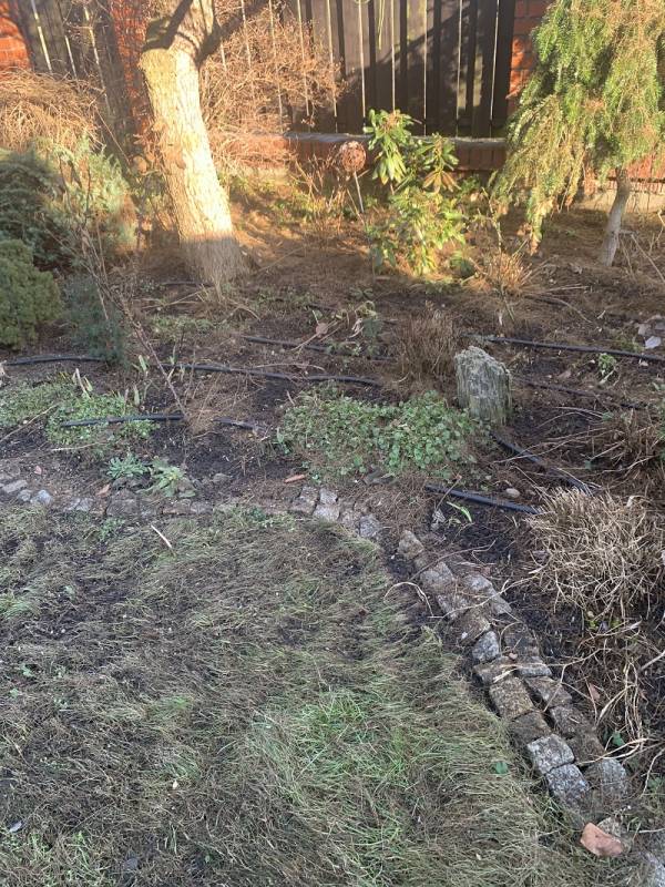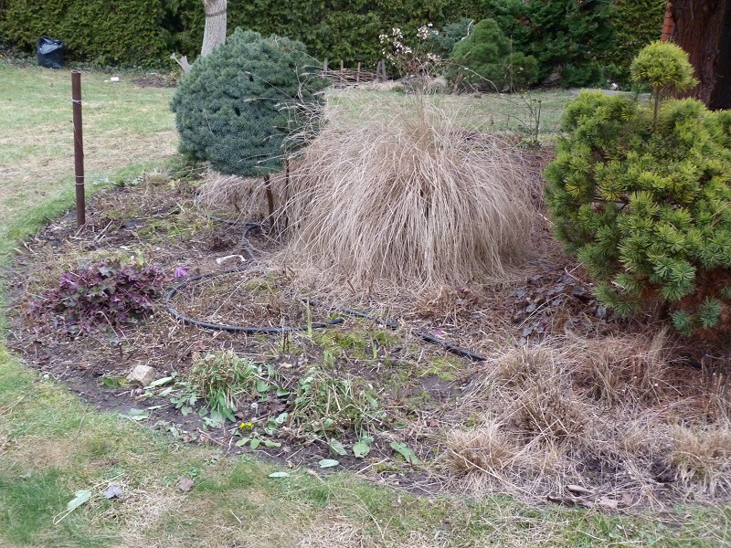 Plan był taki, żeby w pierwszej kolejności wyczyścić rabatę spod sosny, bo igieł znowu nasypało.