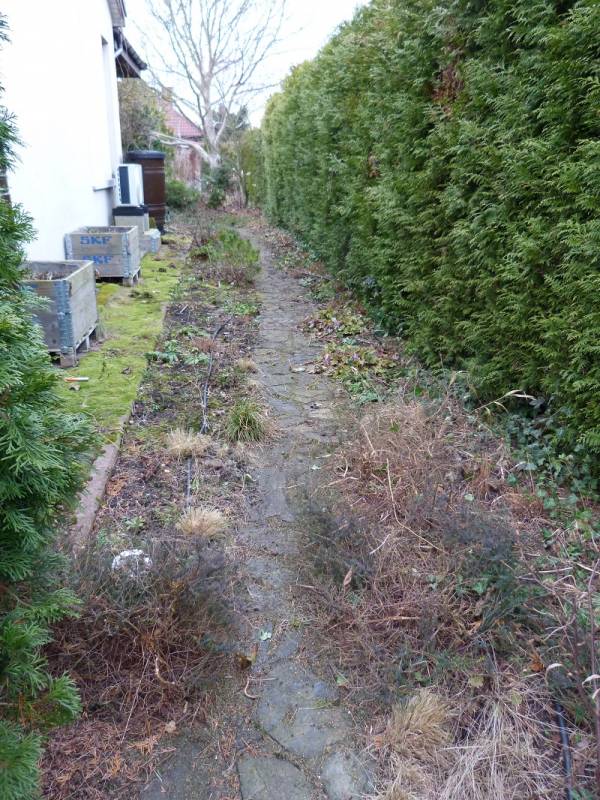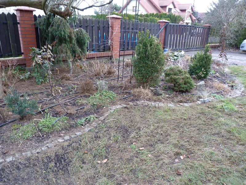 Dzisiaj dokończyłam cały przód, ścieżkę, rabatę pod orzechem i udało mi się zacząc tył.