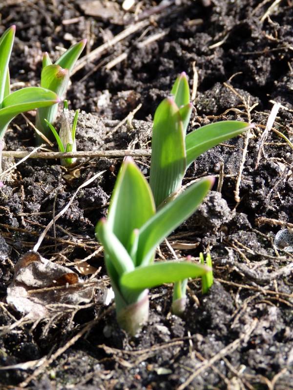 Zabrałam się więc za porządki na rabatach. I nagle zong. Wszystko prawie jest już na wierzchu. Nie przypuszczałam, że przy takim śniegu i mrozach jeszcze tydzień temu cebulowe tak szybko wyjda.