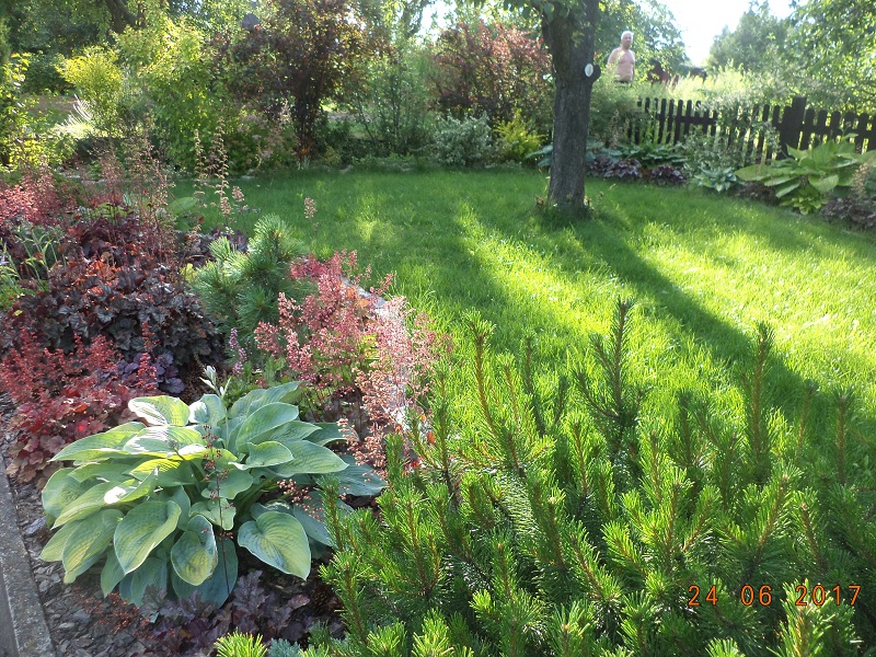 trawy i parę małych iglaczków.